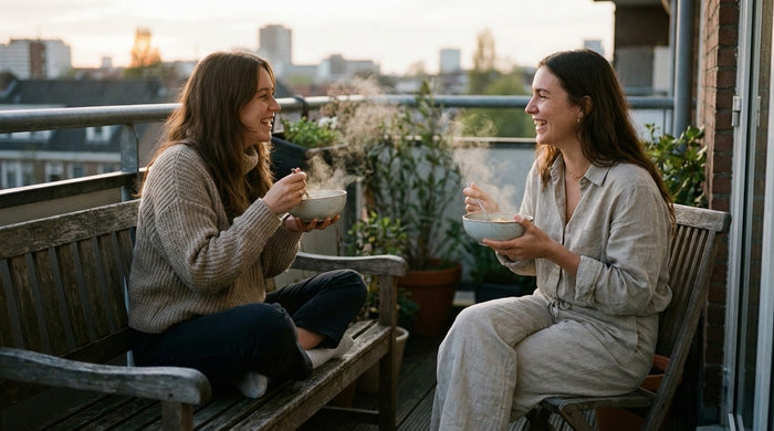 Inhalt im Topf erhitzen oder in einer Schale in der Mikrowelle (3 Minuten bei 600 W). Bei Bedarf 2 EL Wasser zugeben.
