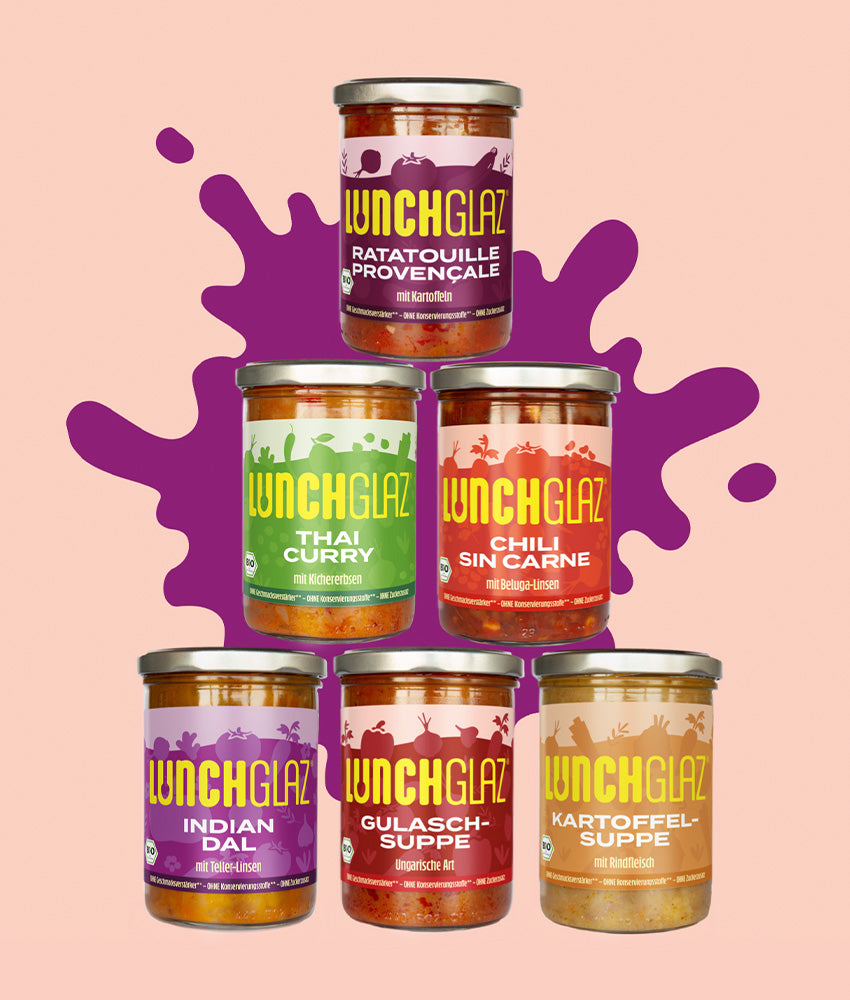 Du möchtest Lunchglaz einmal kennenlernen? Dann ist unsere Probier-Box genau das Richtige für dich: Sechs unterschiedliche Gerichte – von deftig bis exotisch - warten darauf, von dir entdeckt zu werden. Welches Glaz wird dein Favorit?
